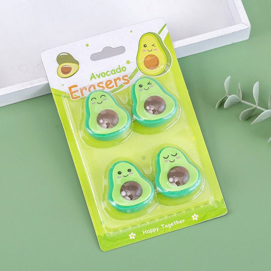Avocado Fruit-Shaped Rubber Erasers Set