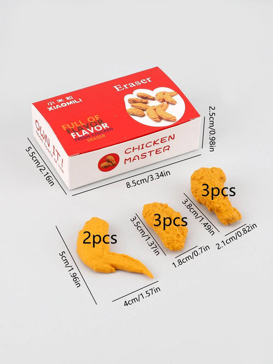 Korean Fried Chicken Bucket Erasers, Durable, Fun Office Stationery, Pack of 9