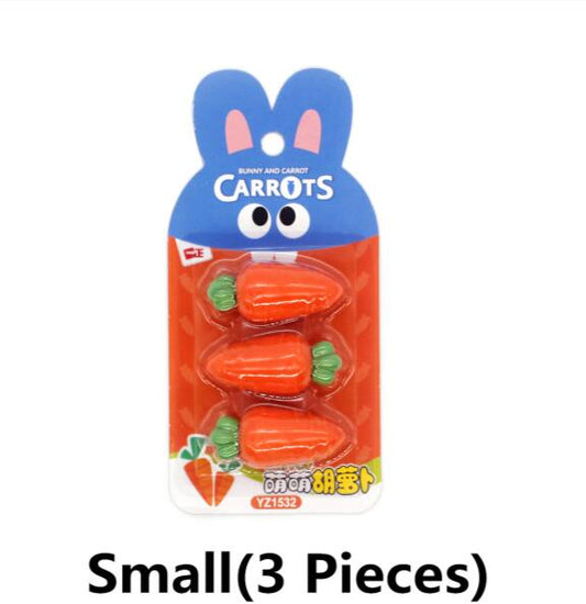 Kawaii Fruit and Carrot Pencil Erasers - Set of 3