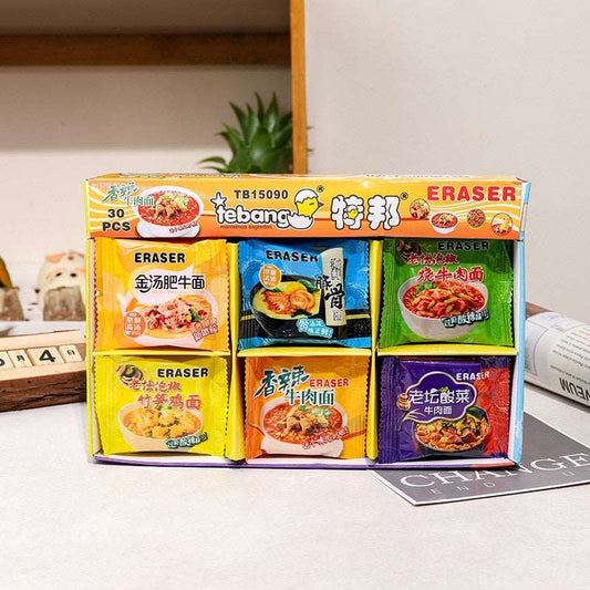 Instant Ramen Noodle Rubber Erasers, Durable, Set of 6