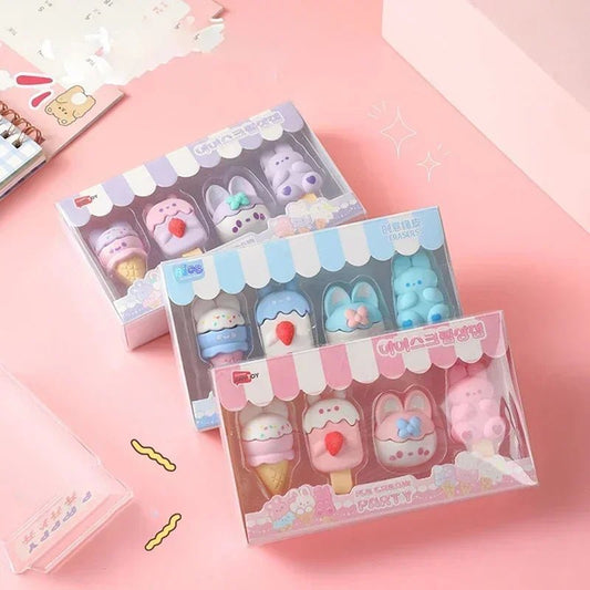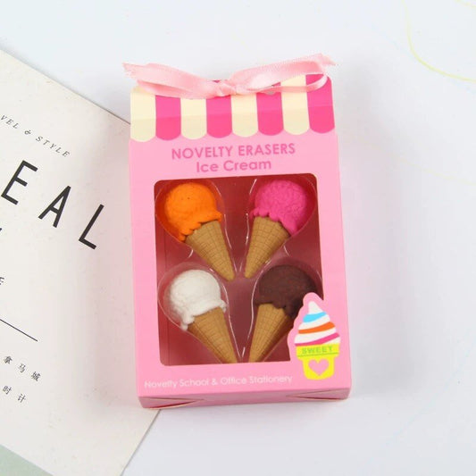 Cute Ice Cream Shaped Rubber Eraser Set, 4 Pieces