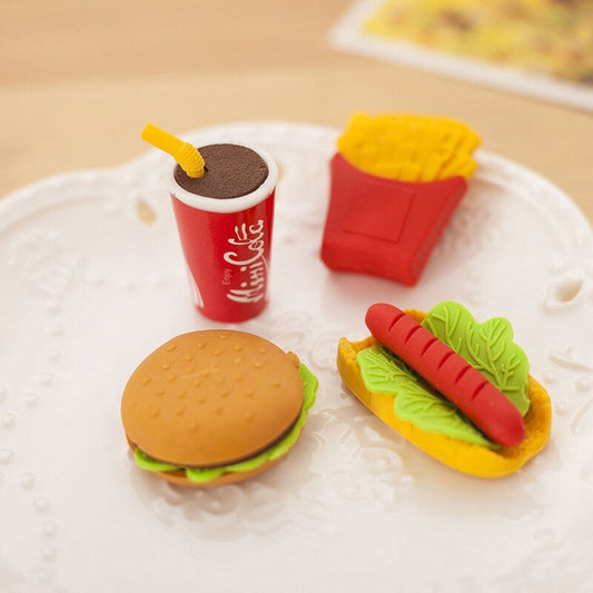 Durable Novelty Burger, Fries, Coke, Hot Dog Erasers - 4 Pack
