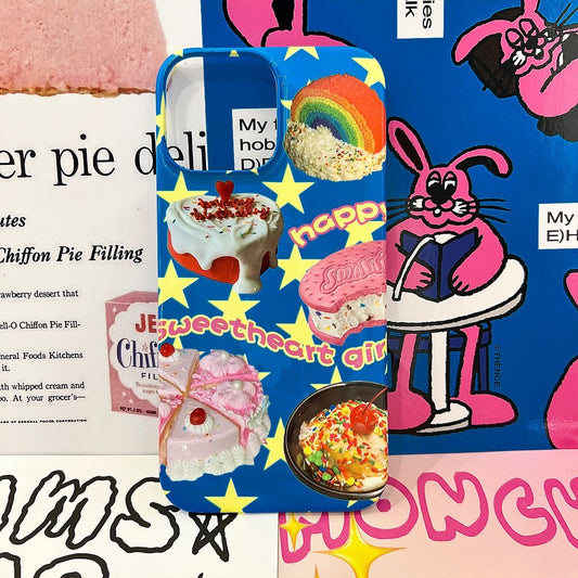iPhone 13/11/12/14 के लिए स्टार्री नाइट ब्लू केक प्रोटेक्टिव केस