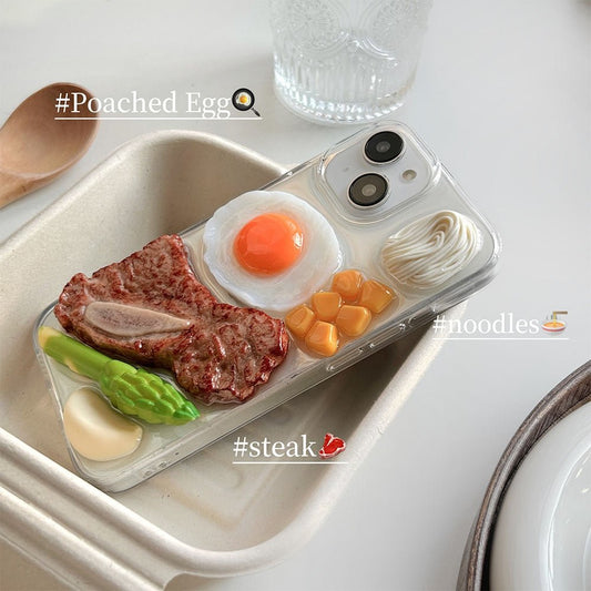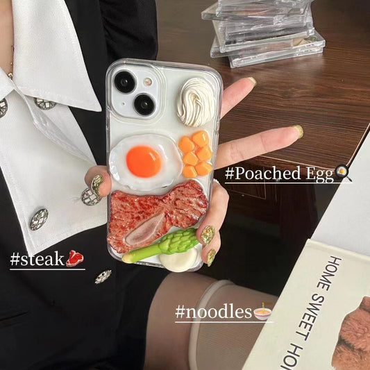 सिलिकॉन पोच्ड एग स्टेक नूडल्स आईफोन 13/12 केस - टिकाऊ और जल-प्रतिरोधी