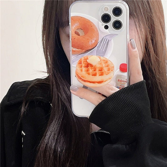 कोरियन टोस्ट ब्रेड वाफल सिलिकॉन आईफोन 14/13/12 केस