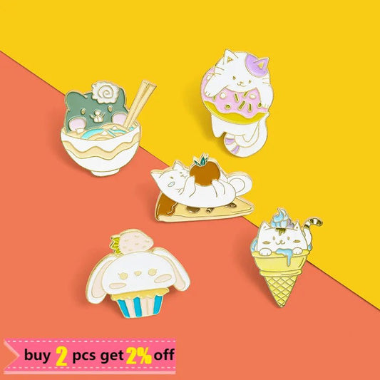 Spille a forma di gatto, gelato e ciambella