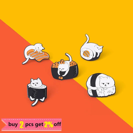 Set di Spille Emaille Sushi Cat