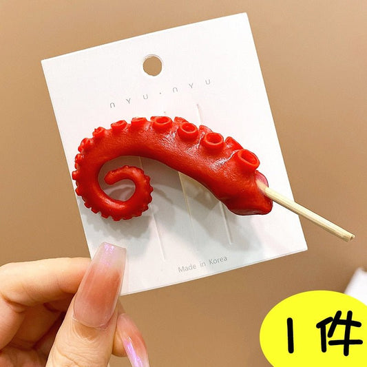 Fermagli per capelli novità a forma di polpo e costine BBQ, set di fermagli in silicone