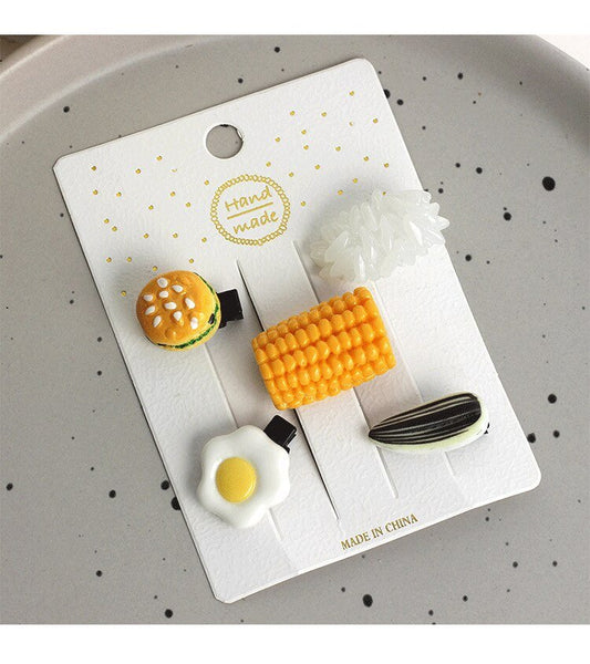 Mini fermaglio per capelli ispirato al cibo: riso, uovo, mais