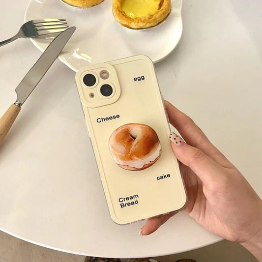 Custodia in silicone per iPhone 12/13 con supporto ad anello a forma di pane giapponese