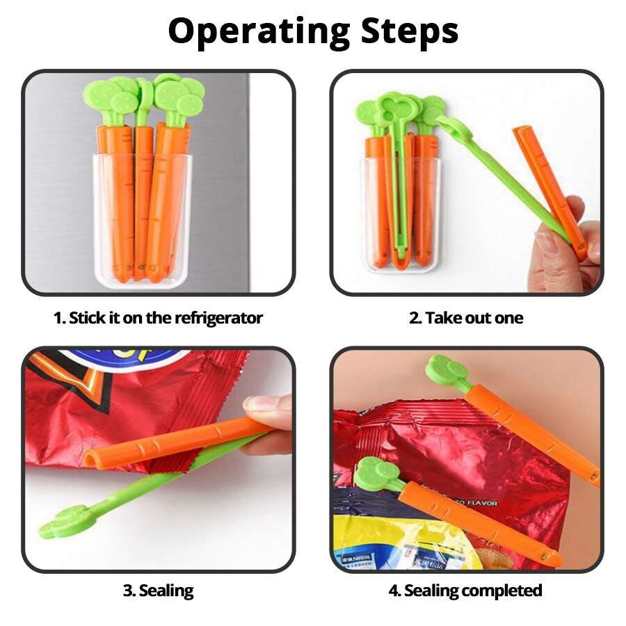 คลิปแม่เหล็กสำหรับอาหาร Carrot Top เพื่อความสดใหม่, ชุด 5 ชิ้น